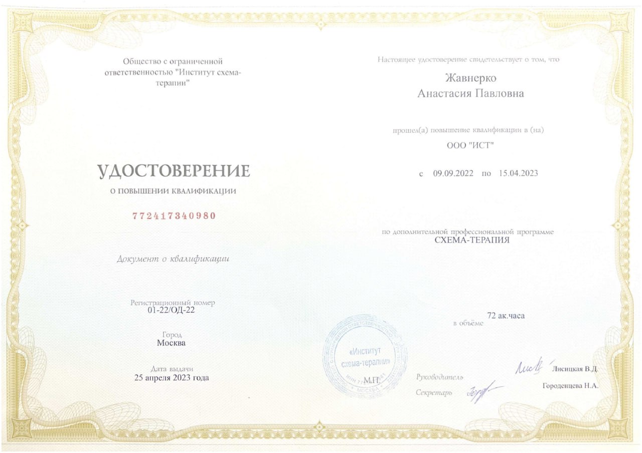 Это хорошо структурированный, высокоэффективный и динамично развивающийся метод психотерапии. Схема — это модель поведения, которая формируется в детстве и укрепляются в течение жизни. Существует 18 негативных схем, которые “мешают” человеку чувствовать себя счастливым. Схема формируется, когда не удовлетворяются эмоциональные потребности. Есть потребности в любви и сострадании, безопасности и защиты и пр. Схема-терапия помогает “переписать” детский опыт и изменить поведение, чтобы не попадать в ловушку негативных схем. Отличительная черта схема-терапии, что она помогает разрешить проблему на трех уровнях: когнитивном, поведенческом и эмоциональном (экспериенциальном), что делает ее высоко эффективной даже в самых непростых случаях.