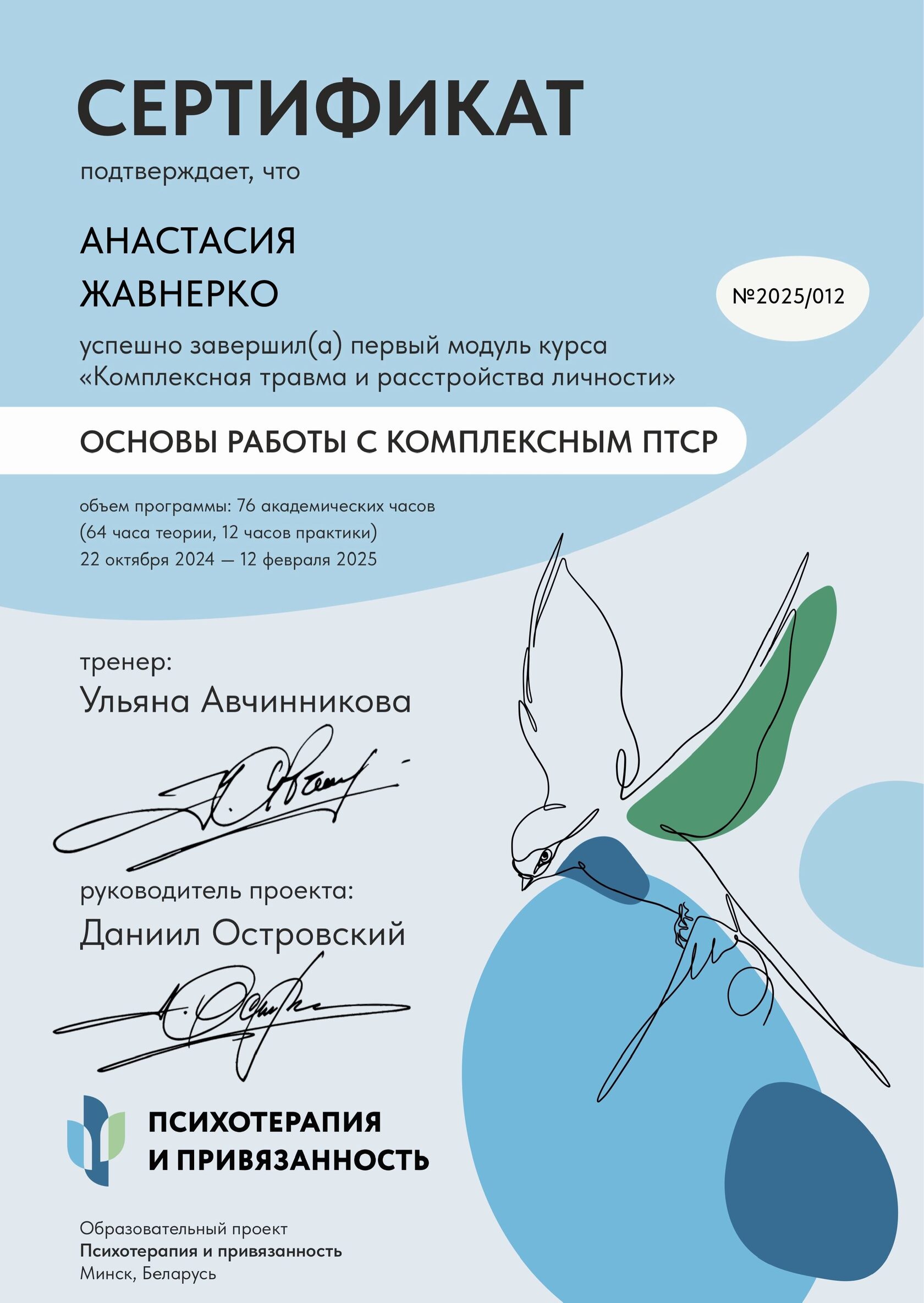 Рекомендована при: депрессии, тревоге, ПТСР, зависимости, ОКР, панических атаках, фобиях, трудностях взаимоотношений и агрессивном поведении.