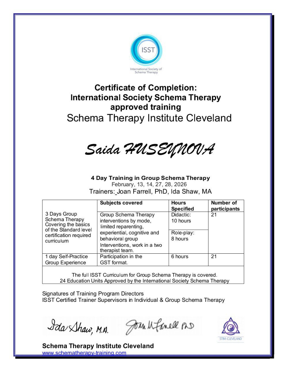 Рекомендована при: трудностях взаимоотношений, неуверенности в себе, ощущении одиночества, стрессе, хронической депрессии, трудности контроля гнева, травме, ПТСР и к-ПТСР; пограничном, нарциссическом, избегающем и зависимом расстройстве личности.