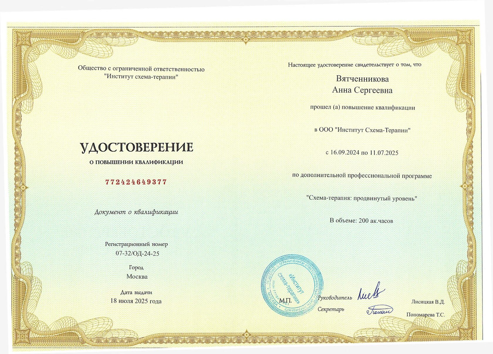 Это хорошо структурированный, высокоэффективный и динамично развивающийся метод психотерапии. Схема — это модель поведения, которая формируется в детстве и укрепляются в течение жизни. Существует 18 негативных схем, которые “мешают” человеку чувствовать себя счастливым. Схема формируется, когда не удовлетворяются эмоциональные потребности. Есть потребности в любви и сострадании, безопасности и защиты и пр. Схема-терапия помогает “переписать” детский опыт и изменить поведение, чтобы не попадать в ловушку негативных схем. Отличительная черта схема-терапии, что она помогает разрешить проблему на трех уровнях: когнитивном, поведенческом и эмоциональном (экспериенциальном), что делает ее высоко эффективной даже в самых непростых случаях.