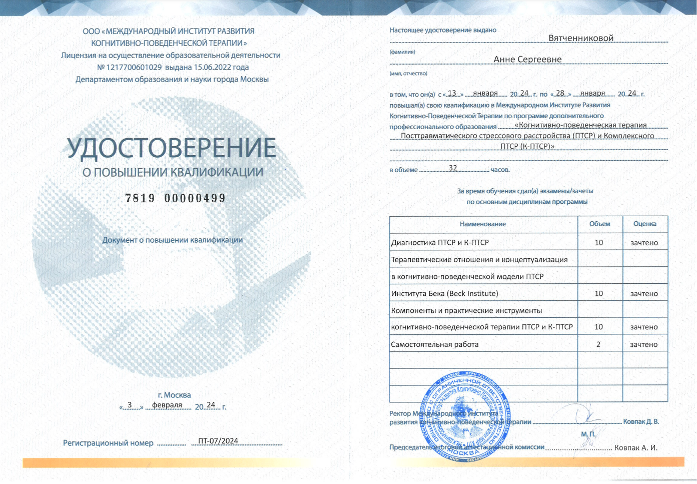 • 2024 г, Когнитивно-поведенческая терапия Посттравматического стрессового расстройства (ПТСР) и комплексного ПТСР (К-ПТСР), АКПП